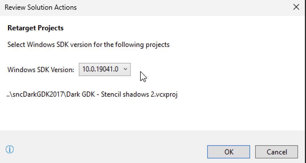 Ensure "10.0.19041.0" is selected next to "Windows SDK Version